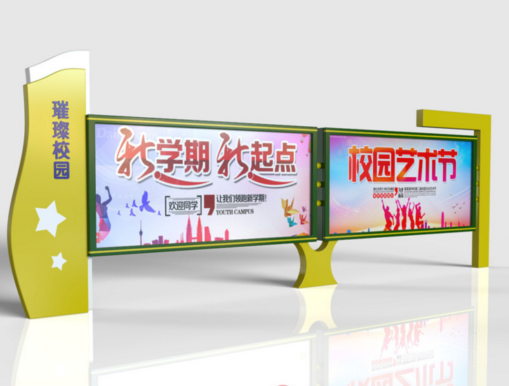 宣傳欄歸于VI運用里的一種,是安排或企業(yè)單位等進行自我宣傳的有用手法。它常被運用于大街,工廠,酒店等公共場所,是企業(yè)自我宣傳的有利武器。宣傳欄一般選用冷軋鋼板、不銹鋼為結構,鋼化玻璃或許耐力板為面板,面板能夠翻開替換宣傳畫面。