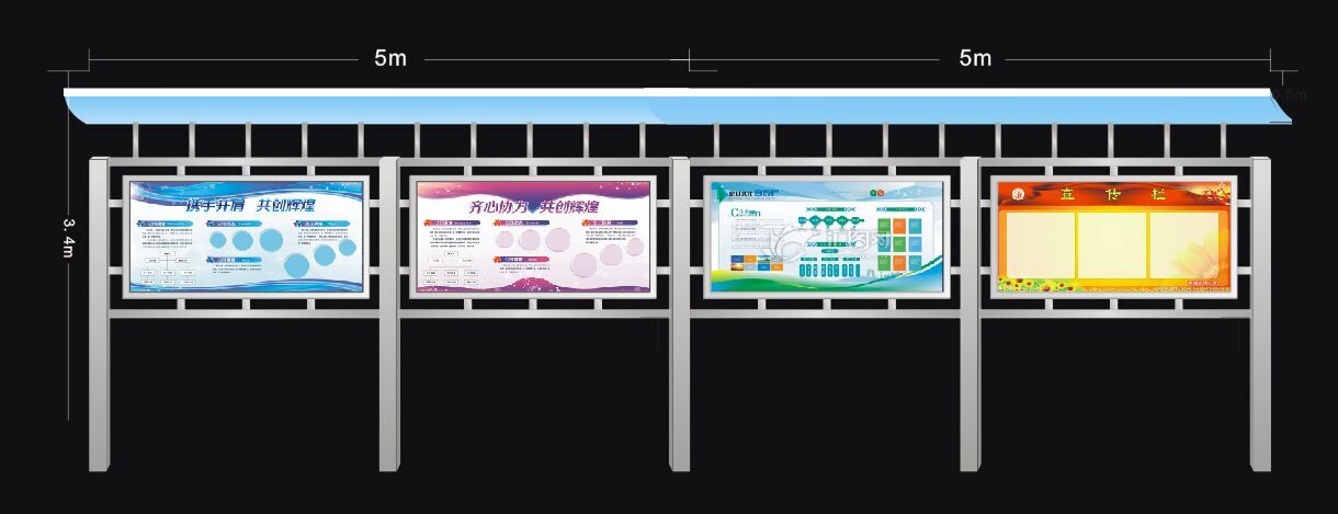 企業(yè)宣傳欄是宣傳企業(yè)文明的中心,在外觀規(guī)劃和內(nèi)容規(guī)劃上要遵循企業(yè)的文明和運營理念,更好的將企業(yè)精神傳達給員工和外界人員。