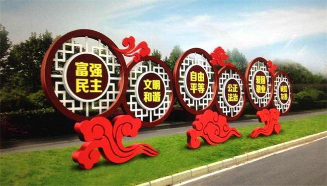 城區(qū)充裕著濃厚的正能量,在農(nóng)村田頭地腳,這股文明之風(fēng)依然如故,在南山村文化廣場可以看到,5座大型雕塑在廣場靜靜樹立,造型別致、不同的色彩展示了核心價值觀的具體內(nèi)容。